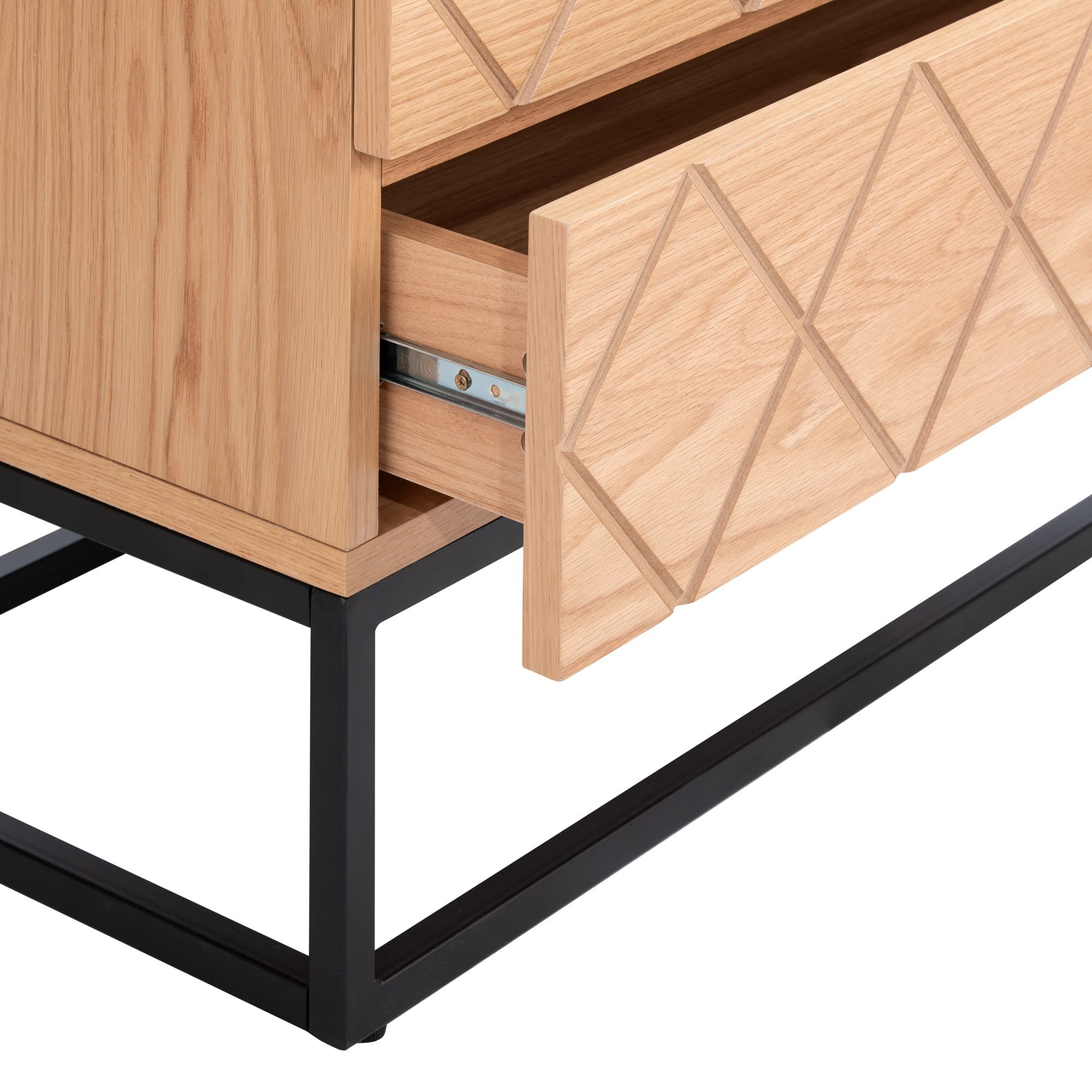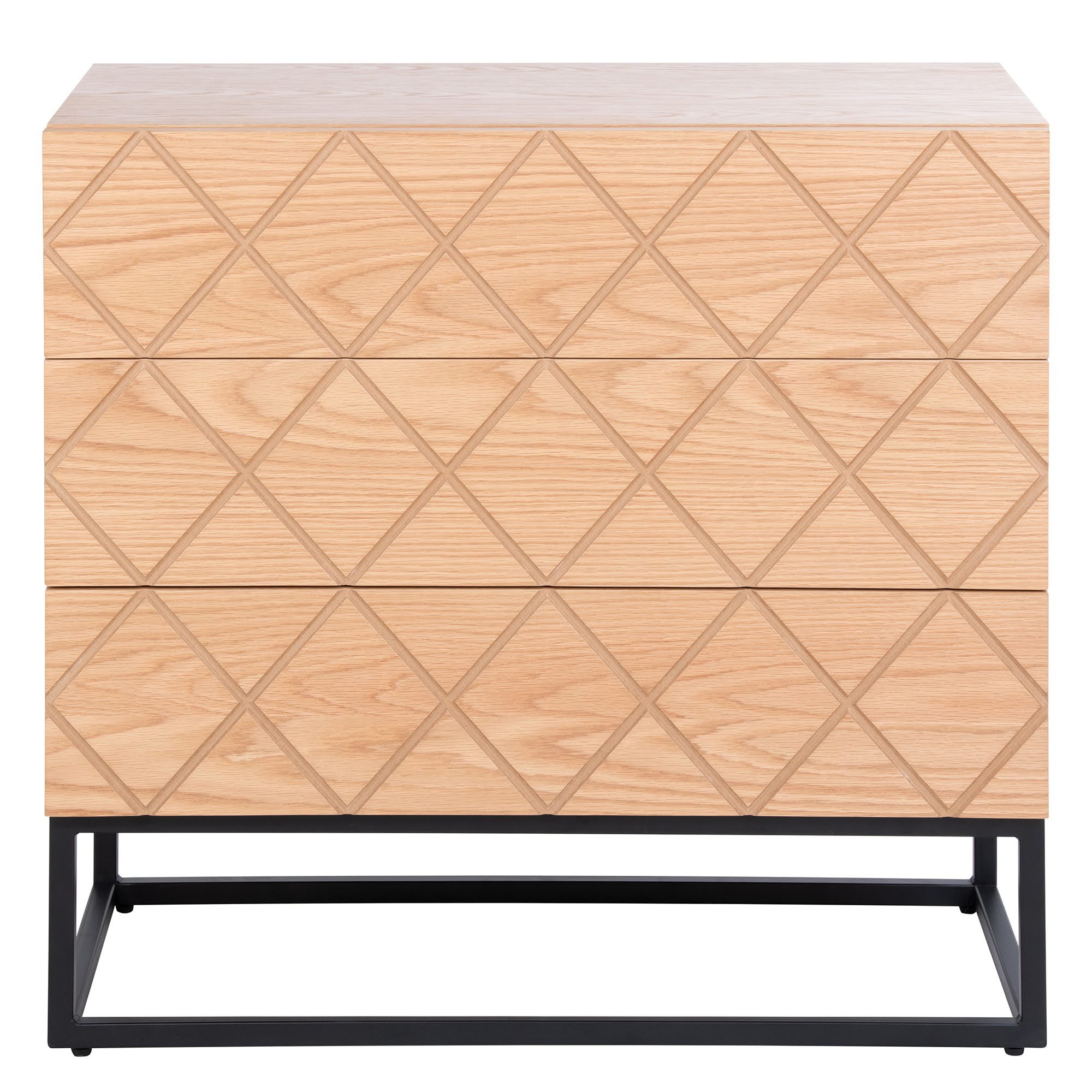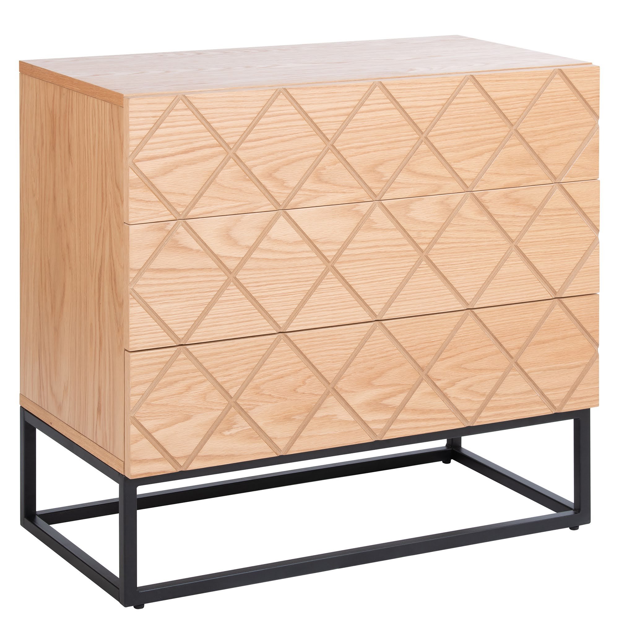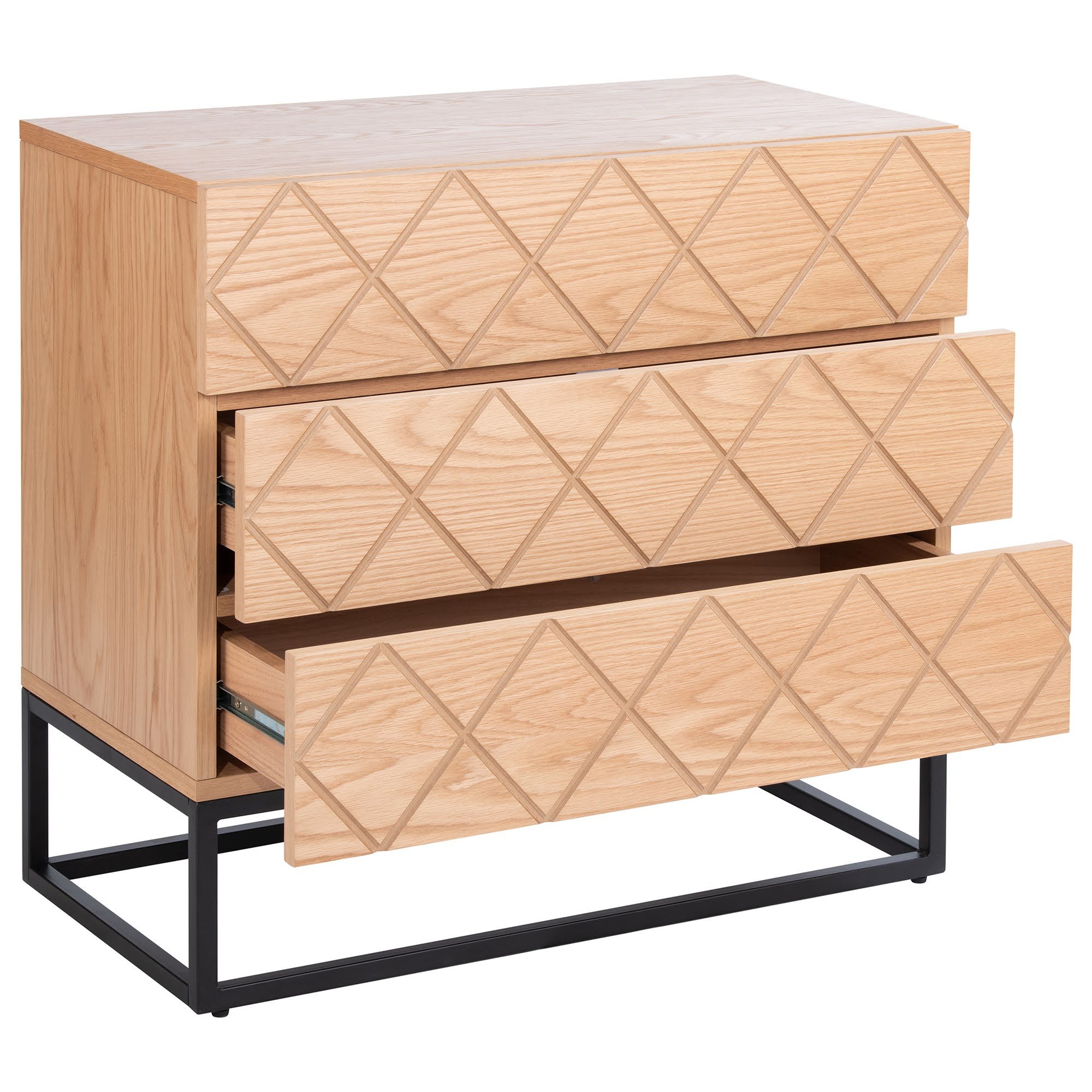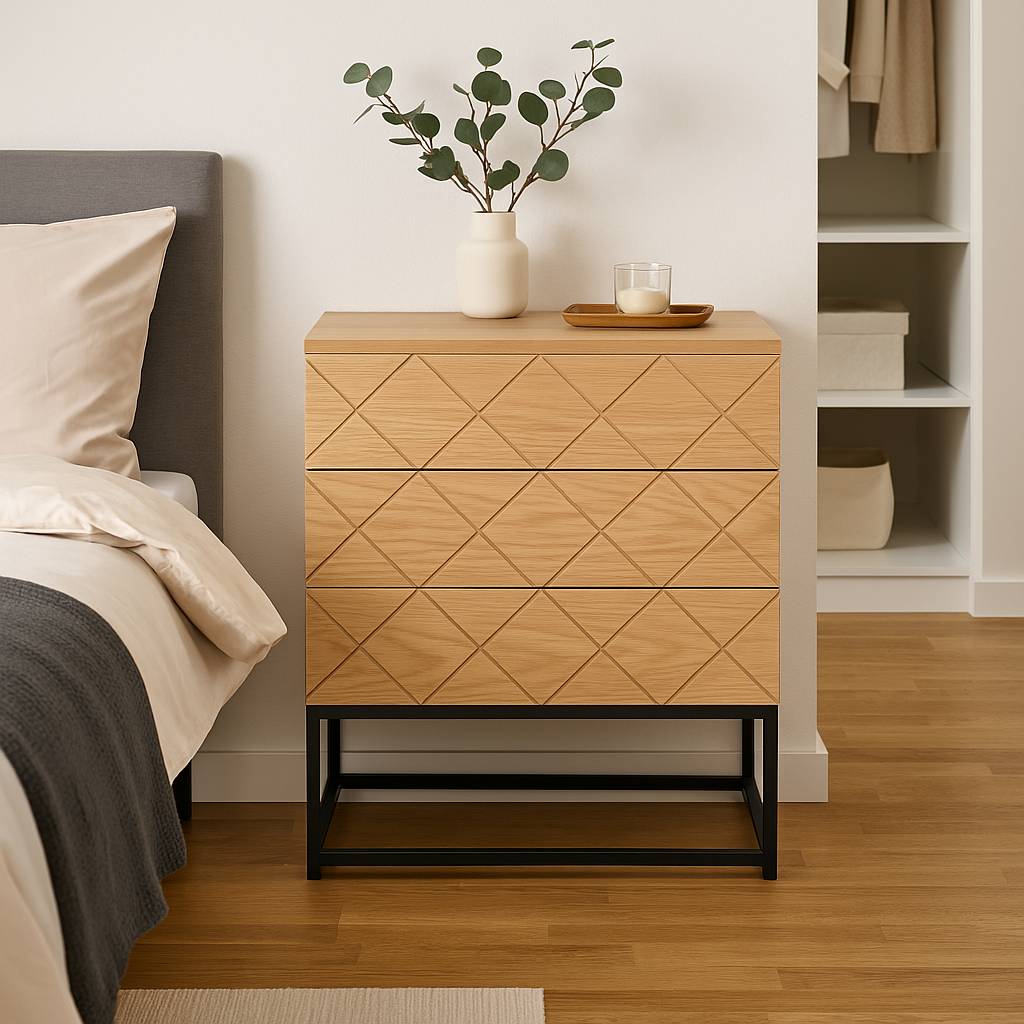 La Cómoda Málaga 3 Cajones es una combinación perfecta entre diseño contemporáneo y funcionalidad. Su estructura limpia, con detalles geométricos en las superficies de los cajones, aporta un aire moderno que se adapta fácilmente a estilos nórdicos, industriales o minimalistas. Además, la base metálica negra no solo añade estabilidad, sino también un contraste visual elegante y sobrio.