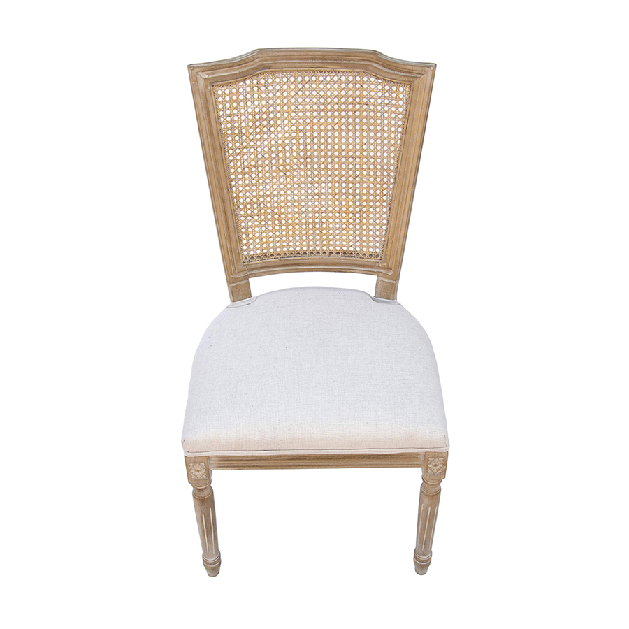 La Silla Meca aporta un aire elegante y atemporal a cualquier comedor gracias a su combinación de materiales nobles y un diseño que mezcla lo rústico con lo refinado. Su estructura de madera tallada en color café claro envejecido destaca por sus delicados detalles, mientras que el respaldo cuadrado de ratán natural ofrece textura, frescura y un toque artesanal muy valorado en ambientes cálidos y acogedores.