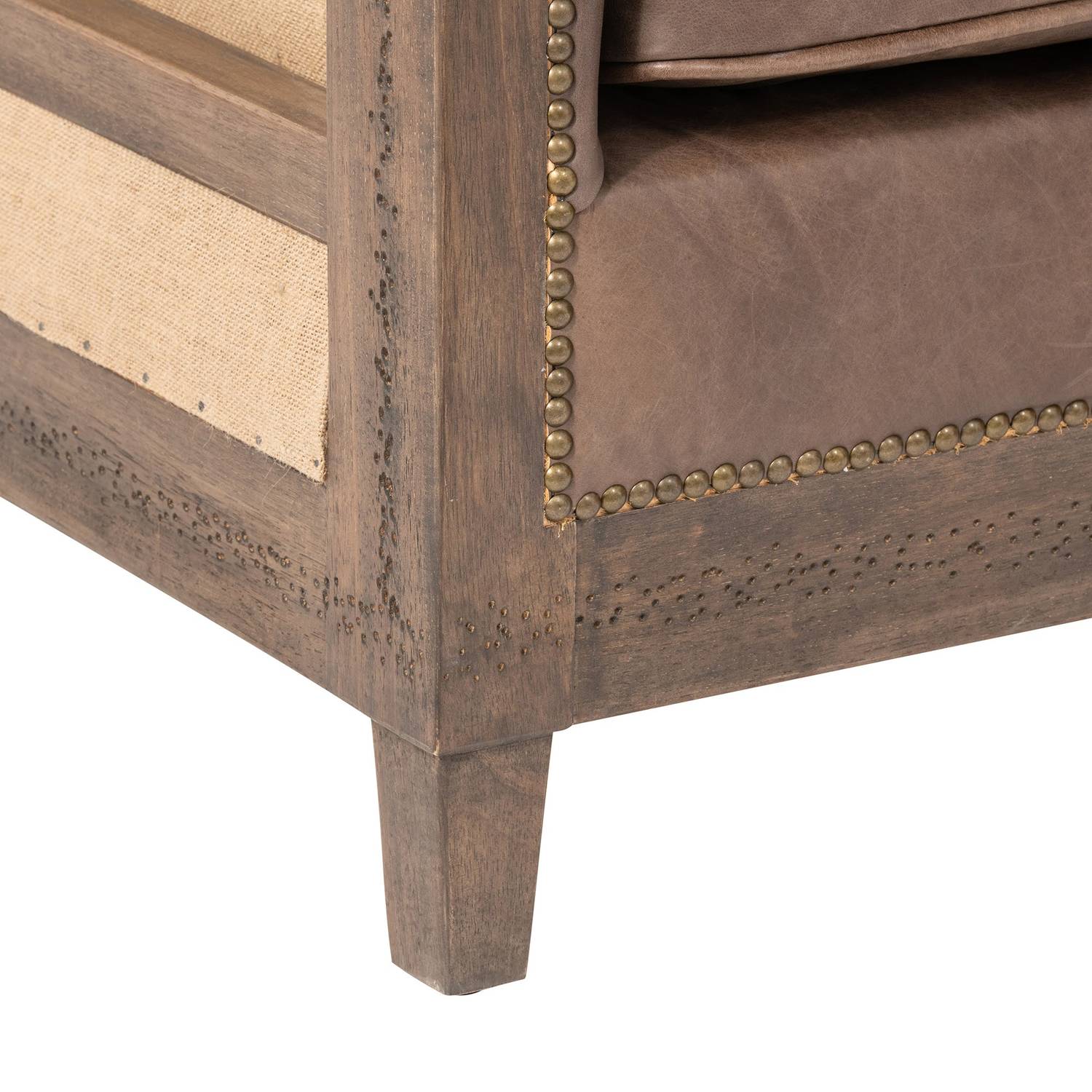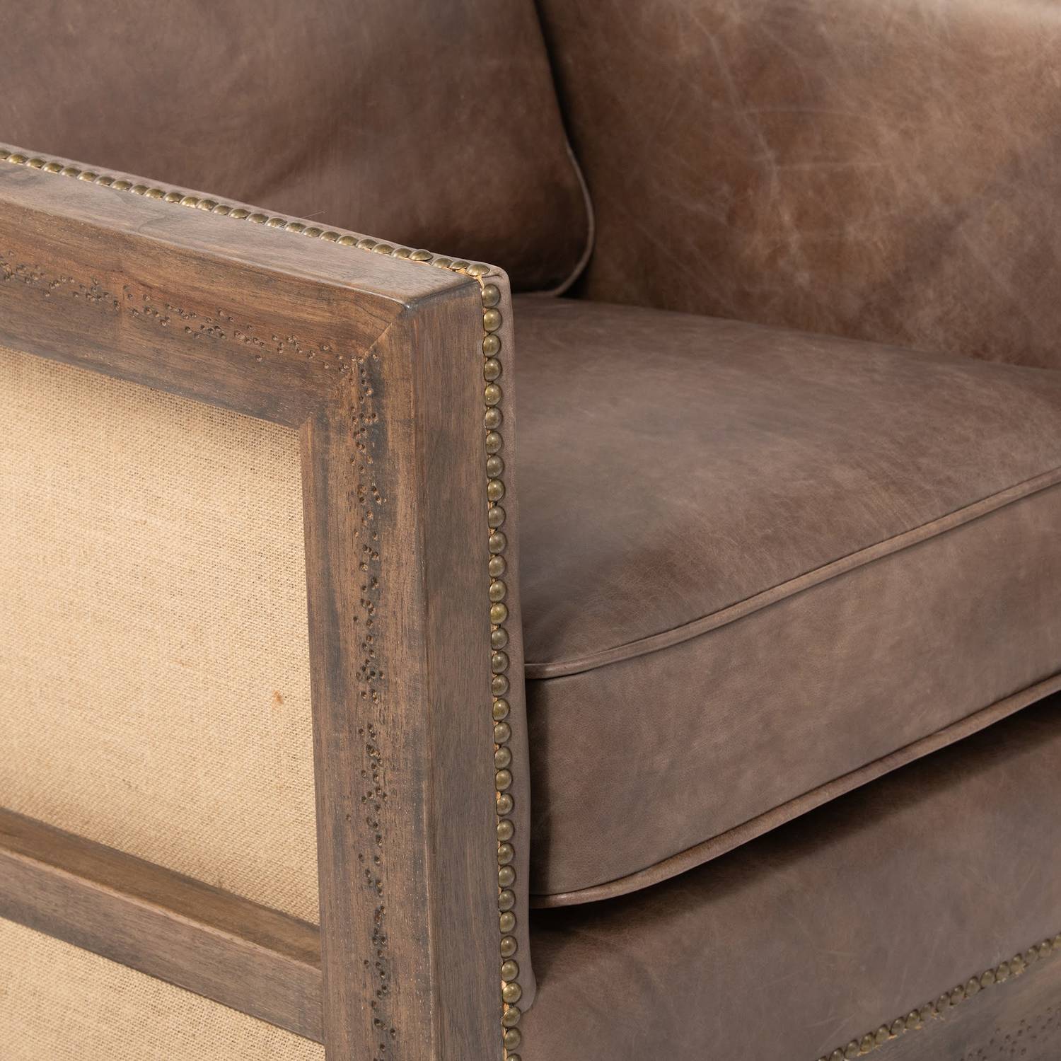 Materiales: Madera de roble, cuero genuino, arpillera y espuma de alta densidad